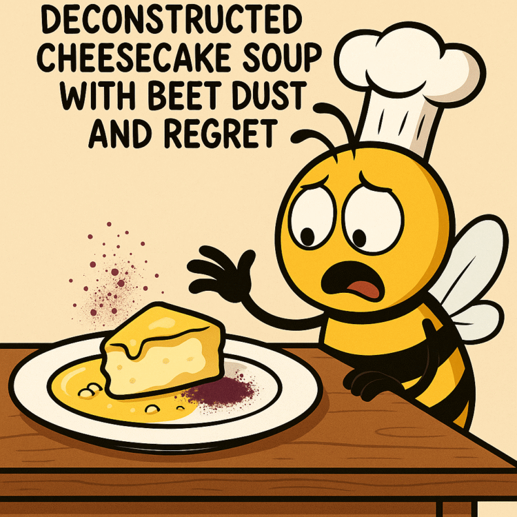 Ah yes, truffle air on beet blood reduction. Flavor? None. Vibes? Confusion. Texture? Human sneeze.