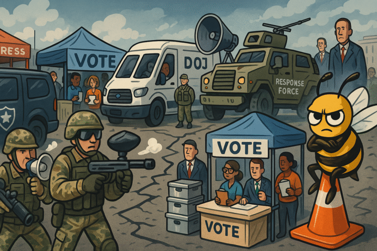 A Humvee parked by a protest line sends a message long before anyone fires a pepper ball. An LRAD speaker humming at a ballot site tells you who owns the noise. A federal “escort” for local ballots tells you who owns the count.