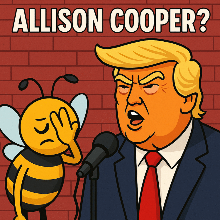 Somewhere between clutching a cheeseburger with one hand and national security with the other, Donald J. Trump—former president, current golf cart menace, and walking indictment—graced us with another performative meltdown. This time, it wasn’t just the military-industrial complex getting whiplash. No, this time he fired his full mental arsenal (read: an expired Nerf gun) at CNN’s Anderson Cooper… or as Trump, in his signature Freudian drag, referred to him: Allison Cooper.