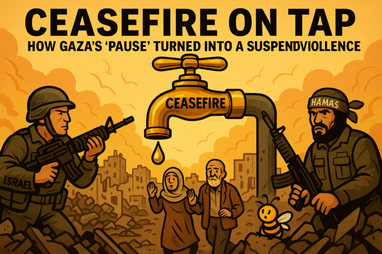 But inside the wiring of this “truce,” wires are crossed and timers are set. The real script: Israel says “pause,” Hamas says “delay,” mediators say “next phase,” and civilians say “if we survive.” The deal is theater; the fine print is still blank.