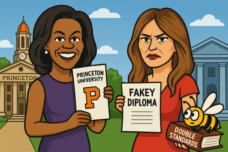 The real scandal isn’t that Melania lied about a degree or overstayed a visa. It’s that the country shrugged. Because in America, credentials matter less than whiteness. Because an immigrant from Slovenia is a “classy model,” but a Black woman from Chicago is a “radical.” Because we’d rather clutch pearls at Michelle’s sleeveless dress than Melania’s naked body. Because lies told by a pretty white face are forgiven faster than truths spoken by a Black one.