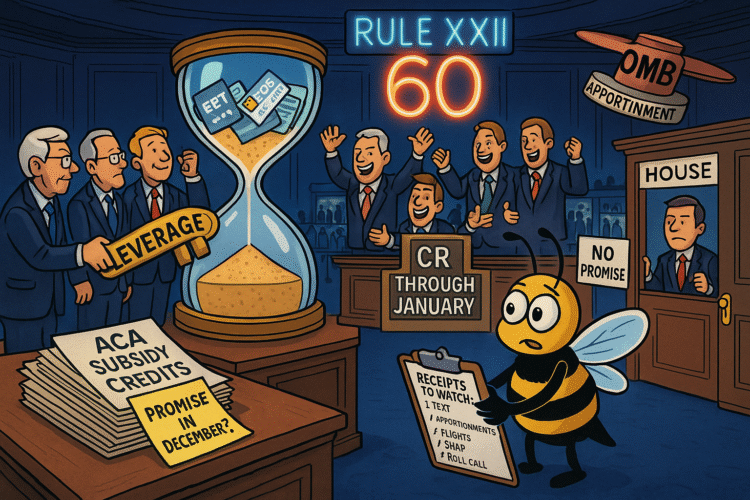 Here is the rulebook underneath the theater. To break a filibuster in the Senate requires sixty votes under Rule XXII. That threshold turns a minority into a brake. It turns a handful of defections into the difference between a talking point and law. When a party fractures, the rule does not comfort them. It exposes them. The shutdown’s purse strings still live where the Constitution put them, in Congress, but purse power means nothing if you agree to reopen the store with the cashier missing and a rain check instead of a product. The structure is old. The lesson keeps arriving fresh.