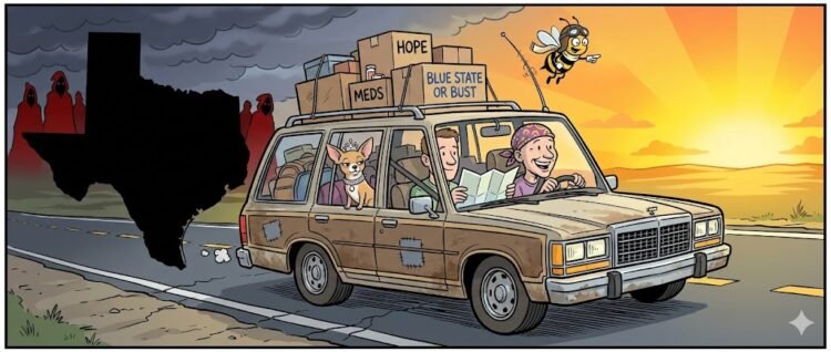 This state has a beauty to it, but its government has decided that people like us are a contagion. I am tired of living in a place where my existence is a legislative debate. We are moving to a blue state. We are seeking political asylum within our own country. We are going to a place where “freedom” means the freedom to be yourself, not just the freedom to carry a weapon into a grocery store.