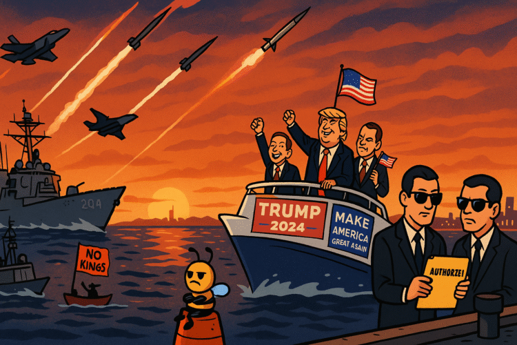 Every administration loves a distraction. Clinton had Kosovo, Bush had Iraq, Obama had drones. Trump’s innovation is collapsing all three into a TikTok reel. The “No Kings” protests that erupted this week—tens of thousands marching from Miami to D.C.—barely made a dent in the algorithm. The footage of explosions at sea did.
