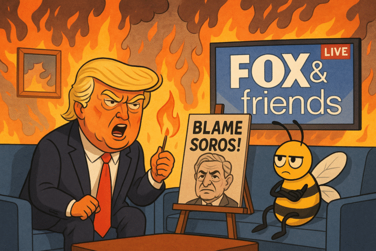 When in doubt, blame George Soros. Trump knows his audience. Soros is the Swiss Army knife of right-wing conspiracy: globalist puppet master, financier of chaos, boogeyman who explains everything from student protests to poor weather.