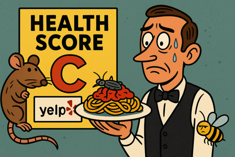 There are few things more American than combining capitalism, technology, and shame. Enter Yelp health scores: the best invention in modern dining, and also the absolute worst. It’s the digital equivalent of peeking behind the kitchen door and realizing that your artisanal avocado toast was prepared six inches away from a cockroach the size of a Honda Civic.