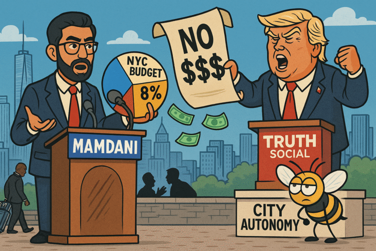 The stage was set when Eric Adams abruptly bowed out of the NYC mayoral race. The city’s Democratic machinery tiptoed toward a new favorite: Zohran Mamdani. Then Trump hit “post” on Truth Social, going full lurid: Mamdani “needs the money from me … to fulfill all of his FAKE Communist promises” and, crucially, “won’t be getting any of it.” In effect: fund me or withhold.