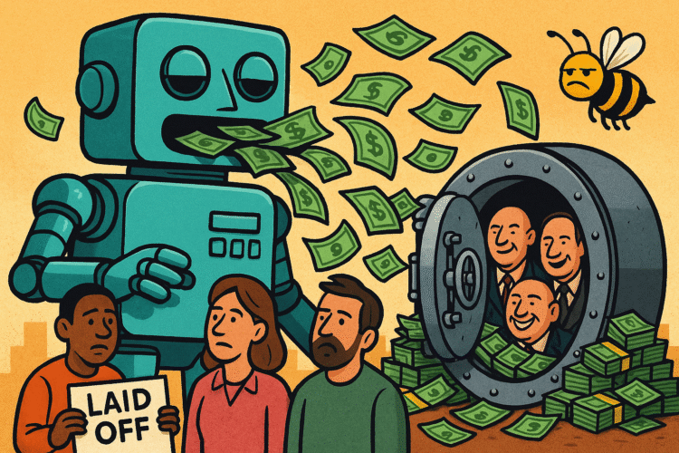 The AI boom is already being marketed as a productivity miracle. Charts and graphs show efficiency gains, GDP bumps, profit margins. But productivity gains that don’t translate into wages, security, or shorter workweeks aren’t productivity. They’re theft.