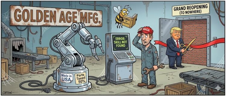 While the administration was busy building a tariff wall, they were simultaneously dismantling the ladder that workers need to climb over it. Donald Trump has scrapped key clean energy subsidies, the very incentives that were driving investment in the battery plants and solar factories of the future. He has left “Make America Skilled Again” style programs withering on the vine, chronically underfunded at the precise moment when modern manufacturing jobs demand technicians who are literate in robotics, PLCs, and AI.