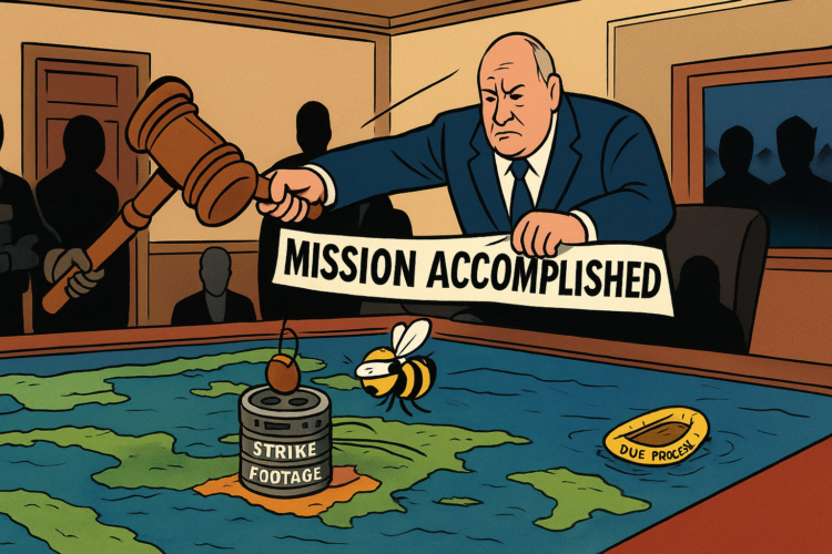The entire spectacle feels like a grim farce staged by a mid-level Hollywood producer who specializes in direct-to-video action sequels. One can almost see the “closed-door briefing” in the committee room. There are no maps. There are no legal justifications. There are just “strike-and-accompany” reels—quick, high-definition clips of things exploding against a beautiful turquoise sunset. No context, no survivors, just high-octane accountability-free cinema.
