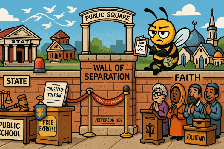 Separation of church and state is not a plot to erase faith. It’s a truce that protects conscience for believers and nonbelievers alike. It prevents the government from picking winners in the marketplace of souls and prevents tomorrow’s majority from weaponizing yesterday’s creed. It keeps law from turning scripture into shackles and keeps religion from becoming a public utility with a cross on the letterhead. It’s the quiet genius of “no establishment + free exercise + no religious test”: a floor sturdy enough for a wildly plural nation to argue, worship, doubt, convert, deconvert, and coexist without a knock at the door.