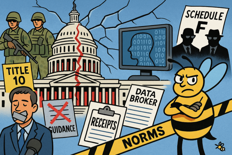 Two threads, braided tight. First, the ache that the country never snapped back to decent form. Second, the names, offices, statutes, and timelines that make the ache real. The jokes stay only if the steel stays under them. When soldiers stand on American streets, when masked agents wait outside clinics, when a federal memo teaches line attorneys to rename crimes, when an inspector general is escorted to a windowless room with a broken copier and a smile, you need nouns and verbs. You need plain English.