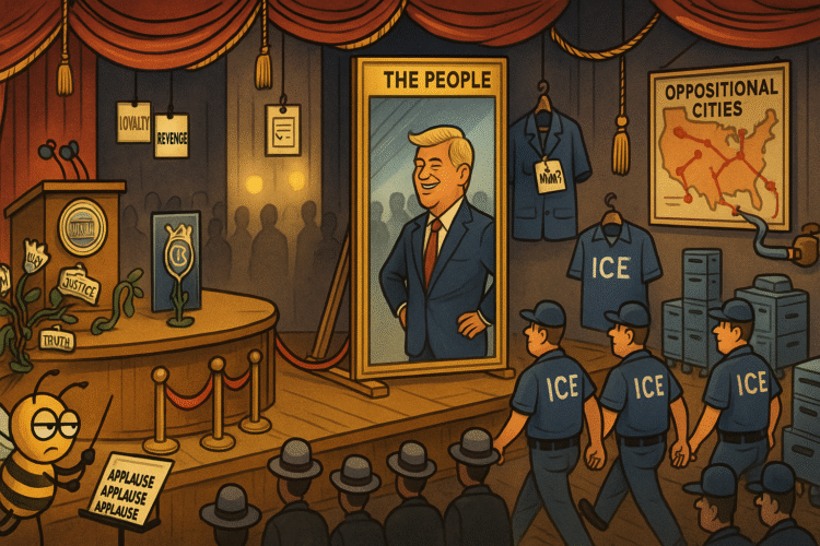 So we laugh where we can, not to make light, but to make seeing possible, and we count what matters, and we refuse to let ICE become a traveling show for a leader’s mood, and we insist the National Guard is for natural disasters, not political ones, and we treat oppositional cities as places where people live rather than venues to be fined for incorrect vibes. We tell the truth out loud about racism with the same energy used to deny it, we track the slur hiding inside the policy acronym, and we do not confuse a chant with consent simply because it rhymes. If the earlier chapter taught us anything, it is that the curtain does not fall on its own, someone has to pull the rope, and then stay to sweep the stage while the audience complains about the dust.