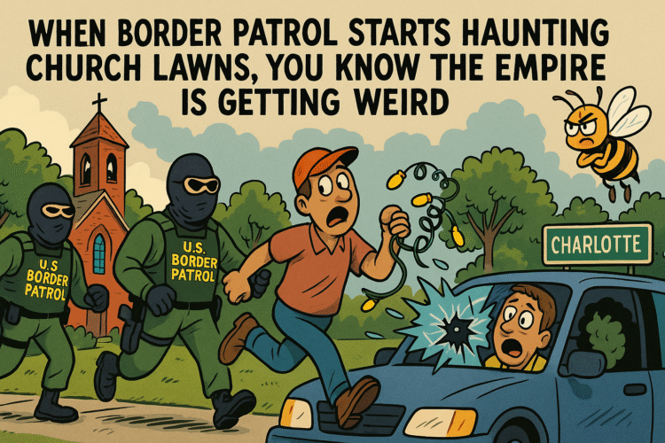 Charlotte is not a border town. Charlotte is not even near a border town. Charlotte is the sort of place where church volunteers trim hedges in the quiet hum of a weekday afternoon, where contractors hang Christmas lights without expecting to be flash mobbed by federal agents, and where U.S. citizens typically assume they can sit in their cars without being dragged out by masked men who refuse to give their names. Yet here we are, watching a major American city hundreds of miles from any international boundary transform into the latest arena for a Homeland Security immigration “surge,” as if the Queen City were secretly harboring desert canyons, cartel tunnels, and a rogue stretch of the Rio Grande no one previously noticed.